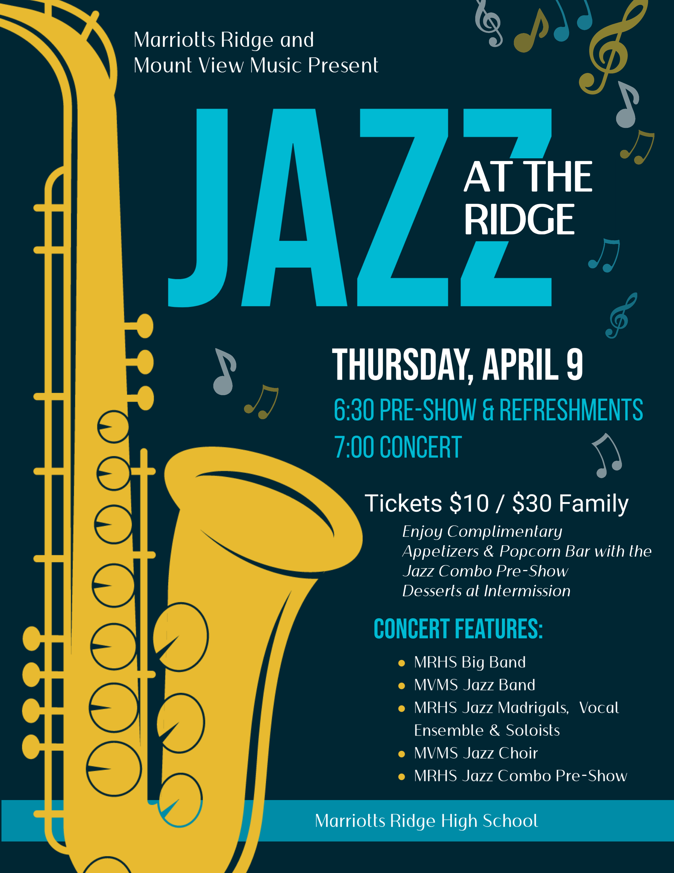 Please join us for our annual Jazz at the Ridge at MRHS on Thursday, April 9th.